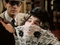А вот актриса Татьяна Веденеева в фильме "Здравствуйте, я ваша тетя!", покорила не только мужское население страны, но и женщин, которые стали срочно воплощать образ героини в жизнь. В ход пошли английские строгие костюмы, шляпки с вуалетками, под которых веером укладывались волосы, в точности так, как у Танечки Веденеевой.